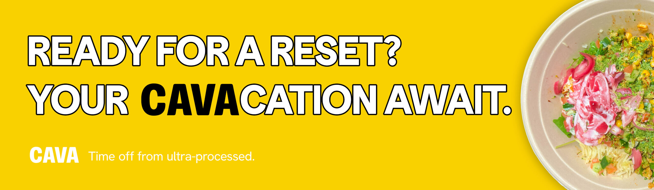 Think of a CAVAcation as your little getaway from all the grease and heavy food we load up on every day. It’s a chance to recharge with the fresh, balanced flavors of the Mediterranean: bright veggies, hearty grains, and that drizzle of olive oil magic.