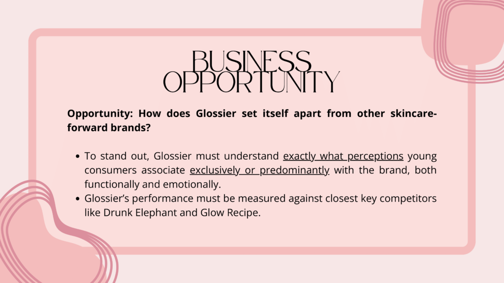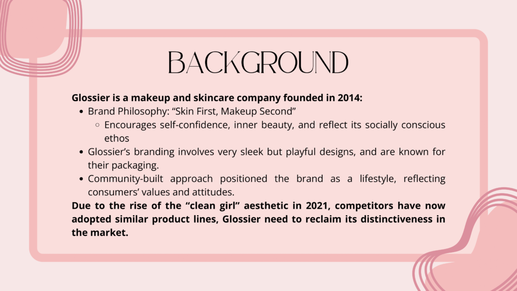 Glossier built its name on minimal, skincare-first beauty, winning over millennial women. However, as the ‘clean girl aesthetic’ rose among Gen Z, competitors introduced similar products, making Glossier less distinct. To help reclaim its edge, my partner and I designed a questionnaire to gather insights, leading to an advertising campaign that repositions Glossier as must-have brand in four relatable occasions.